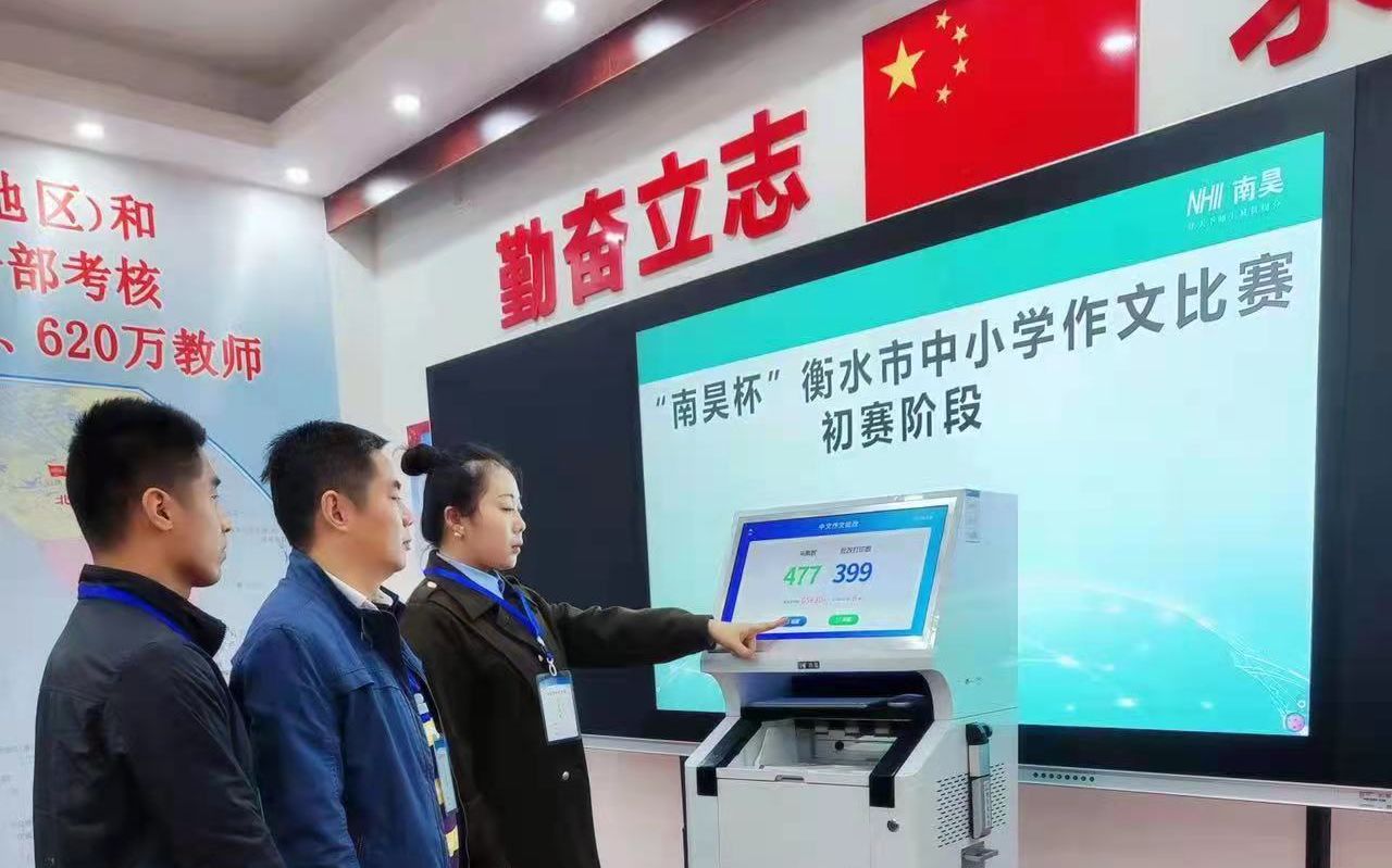 組委會測評組在使用設(shè)備對作文進(jìn)行評分