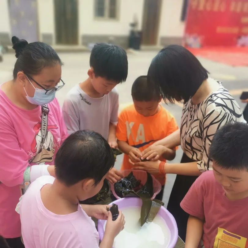 活動包括文藝匯演、包粽子、鄰里宴等環(huán)節(jié)。在文藝匯演環(huán)節(jié),戲曲愛好者們輪番上陣,表演了《朝陽溝》《紅燈記》《淚灑相思地》等節(jié)目,嘹亮的唱腔贏得居民們不時地拍手叫好。在包粽子環(huán)節(jié),男女老少齊上手,圍在桌子前,一手拿粽葉,一手裝米,不一會兒一個個好看又精致的粽子就包好了。還有小朋友學著包粽子,“拿一張粽葉,折成小碗的形狀,裝點米,再放上紅棗,包好,捆繩……”失敗了幾次之后,終于學會了包粽子。