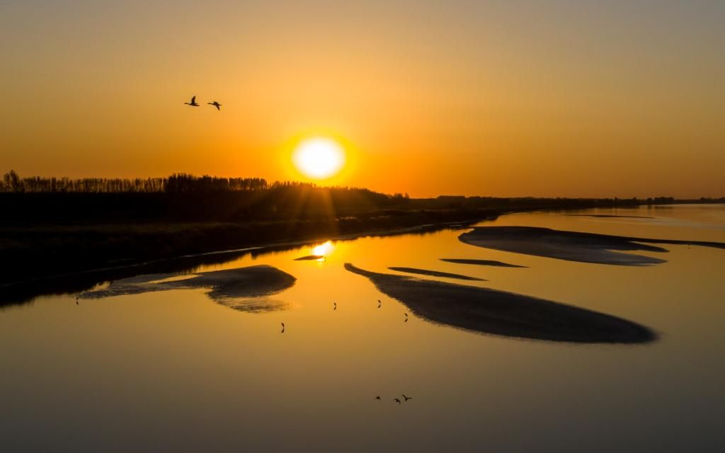為加快推進污染綜合治理,優化沿黃生態空間布局,當地啟動天鵝湖慢城濕地生態保護和修復項目,短短幾年間實現了黃河外灘鹽堿澇洼地的生態修復。現已恢復濕地200萬平方米,形成綠化面積190萬平方米,擁有樹木80余種、2萬余株,綠化率超過80%。