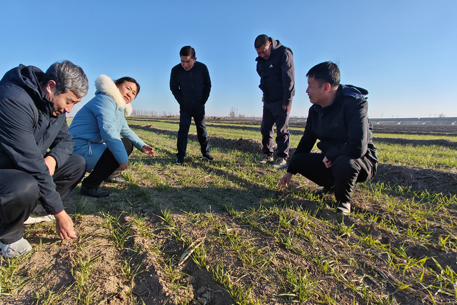 技術人員深入田間地頭,查看小麥苗情、墑情,根據不同地塊,講解麥田冬灌、施肥、病蟲害防治等方面的知識,發放《小麥冬季管理技術建議》,提早謀劃“春病冬治”,降低來年病蟲發生幾率,并針對農戶提出的問題現場答疑解惑、對癥下藥,促進小麥安全越冬。