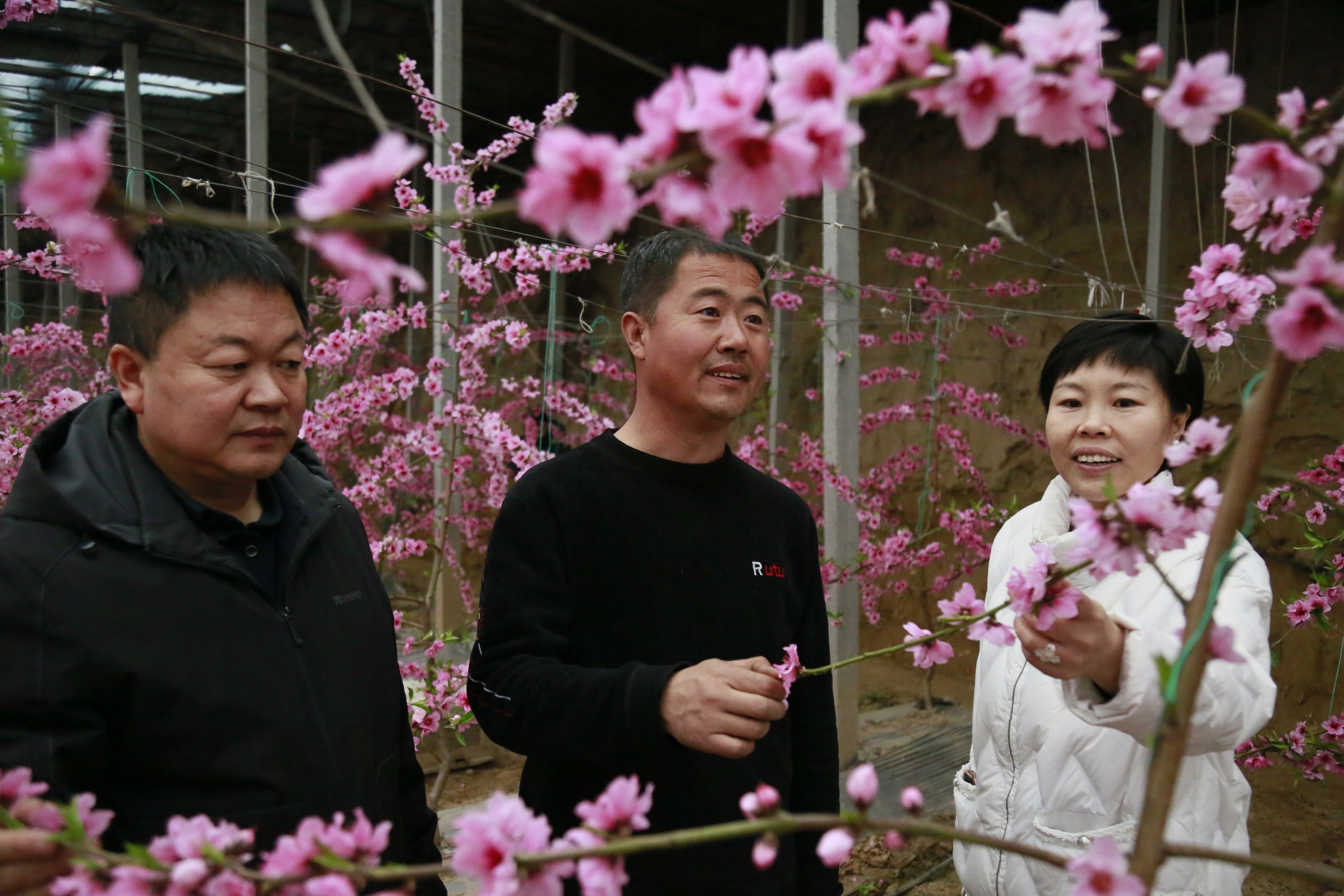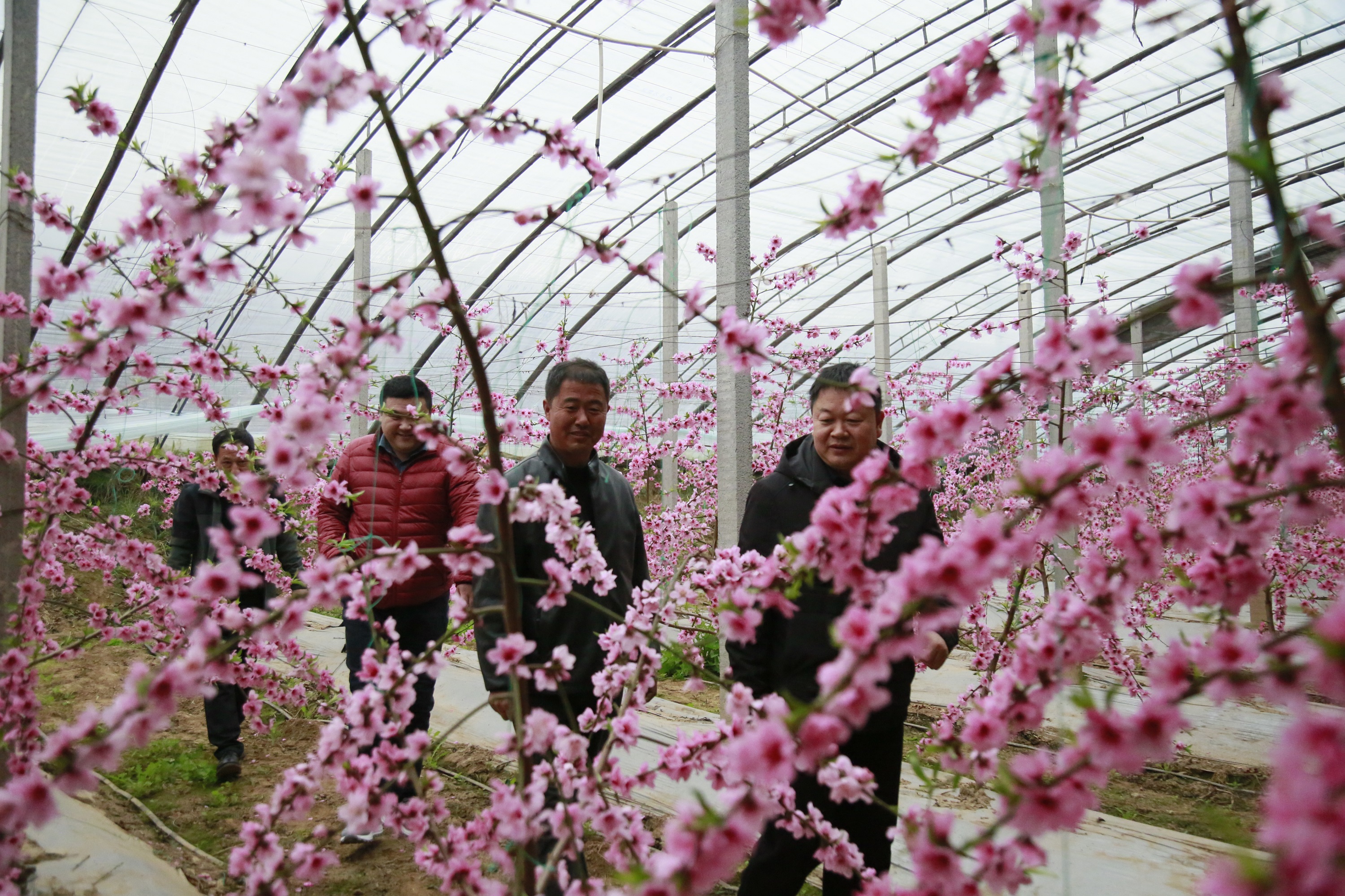 春來萬物長,大棚管理忙。2月18日,春寒料峭,春雨纏綿,深州市穆村鎮店上村果農劉大賽的油蟠桃大棚內,桃花俏枝頭,農技人員忙指導,呈現出一派人勤春來早的農忙景象。