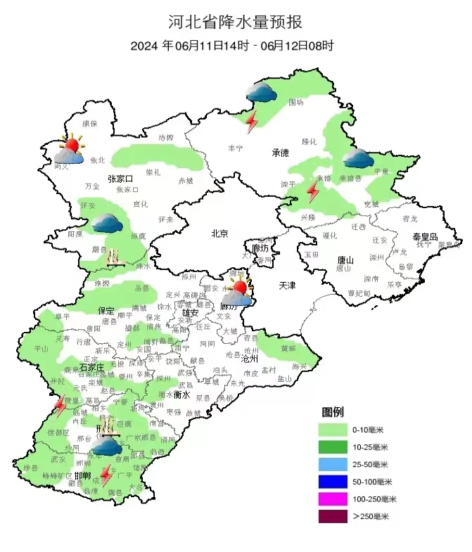 具體天氣預(yù)報(bào)為:6月11日傍晚到夜間,陰有分散性雷陣雨或陣雨轉(zhuǎn)晴,偏南風(fēng)3~4級(jí),最低氣溫24~25℃;6月12日,晴間多云,偏南風(fēng)3~4級(jí),氣溫41~26℃;6月13日,晴轉(zhuǎn)多云,偏南風(fēng)4級(jí)左右,氣溫42~30℃;6月14日,多云間陰有雷陣雨,東北風(fēng)3~4級(jí),陣風(fēng)5~6級(jí),氣溫35~23℃;6月15日,多云轉(zhuǎn)晴,氣溫35~23℃。