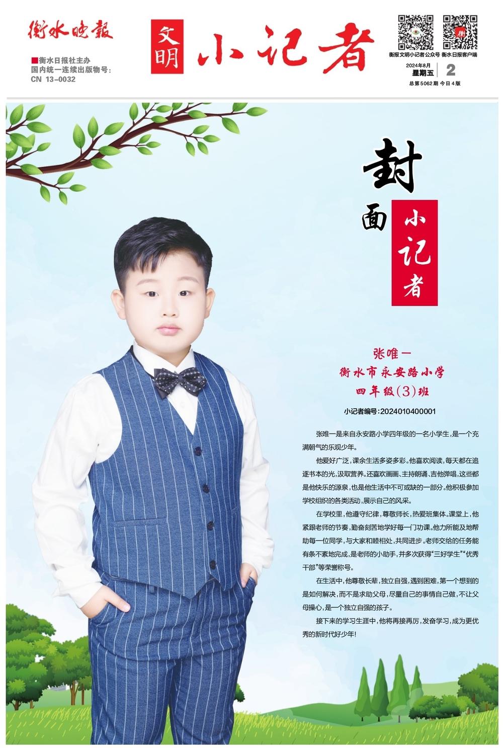張唯一是來(lái)自永安路小學(xué)四年級(jí)的一名小學(xué)生,是一個(gè)充滿朝氣的樂(lè)觀少年。