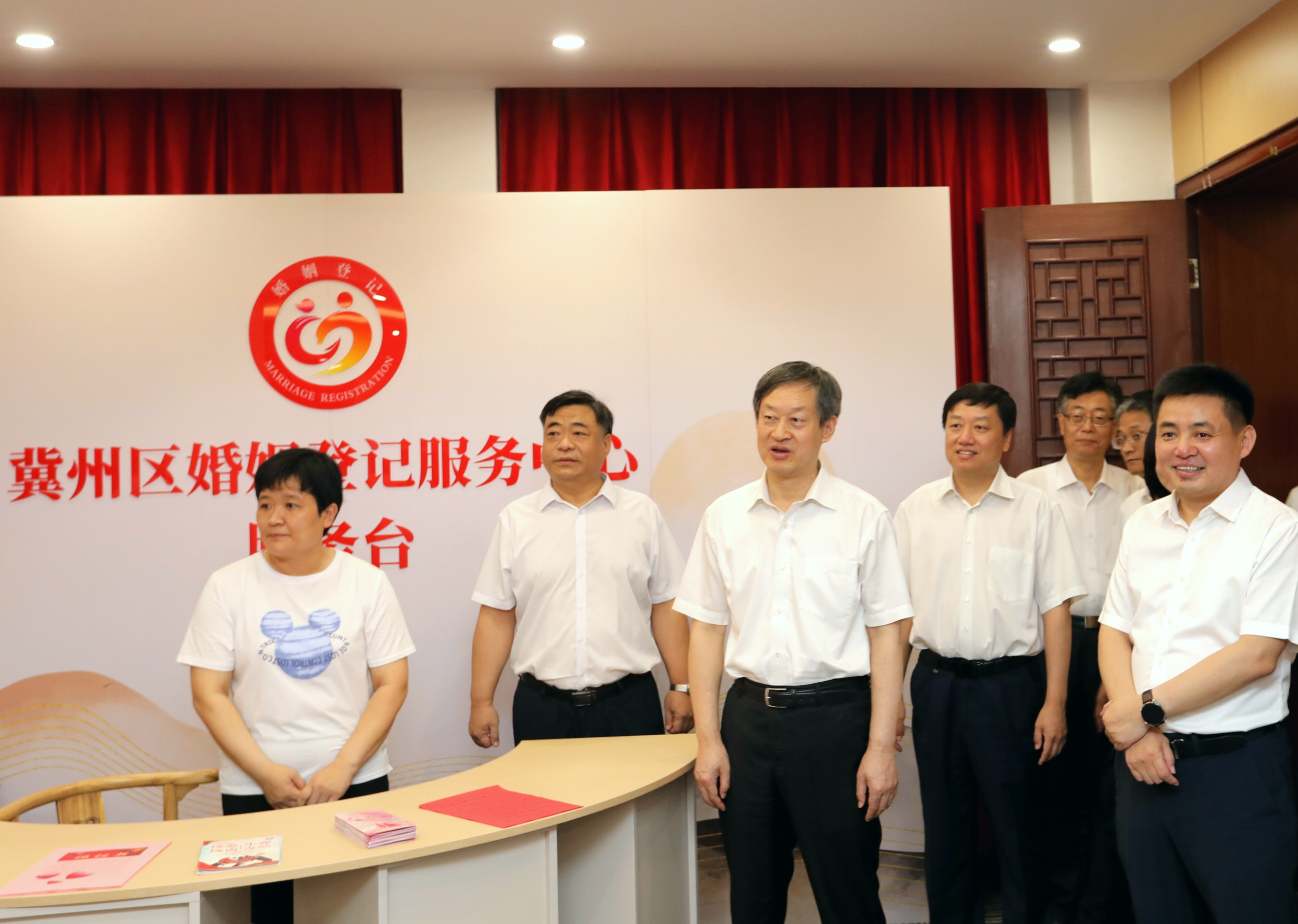 吳曉華、董曉航一行還到冀州區婚姻登記服務中心、湖濱驛站等處,實地察看了冀州區推進婚俗改革和發展“甜蜜經濟+文旅”產業等情況。