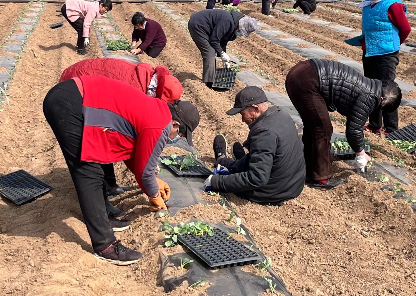 只見工人們正有序地進(jìn)行著西蘭花的移栽工作,一株株嫩綠的西蘭花幼苗在春風(fēng)中搖曳生姿,向人們展示著生命的活力。種植戶許亞剛為了確保春季西蘭花的順利移栽,特意招募了30余名當(dāng)?shù)卮迕窦凶鳂I(yè),不僅保證了移栽的及時(shí)性,也為周邊群眾提供了就近就業(yè)的機(jī)會(huì)。