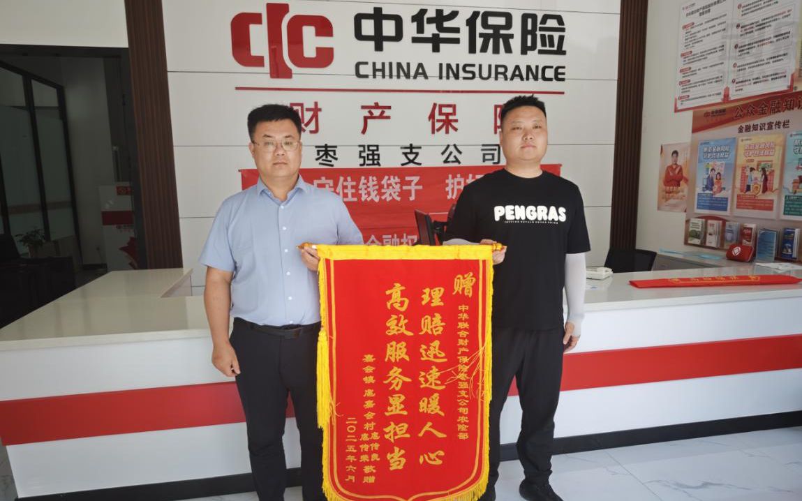 6月10日下午,衡水市棗強縣嘉會鎮嘉會村種植戶扈先生專程來到中華財險棗強支公司,送上印有“理賠迅速暖人心 高效服務顯擔當”的錦旗,對該公司農險服務的專業、高效和便捷表示由衷感謝。