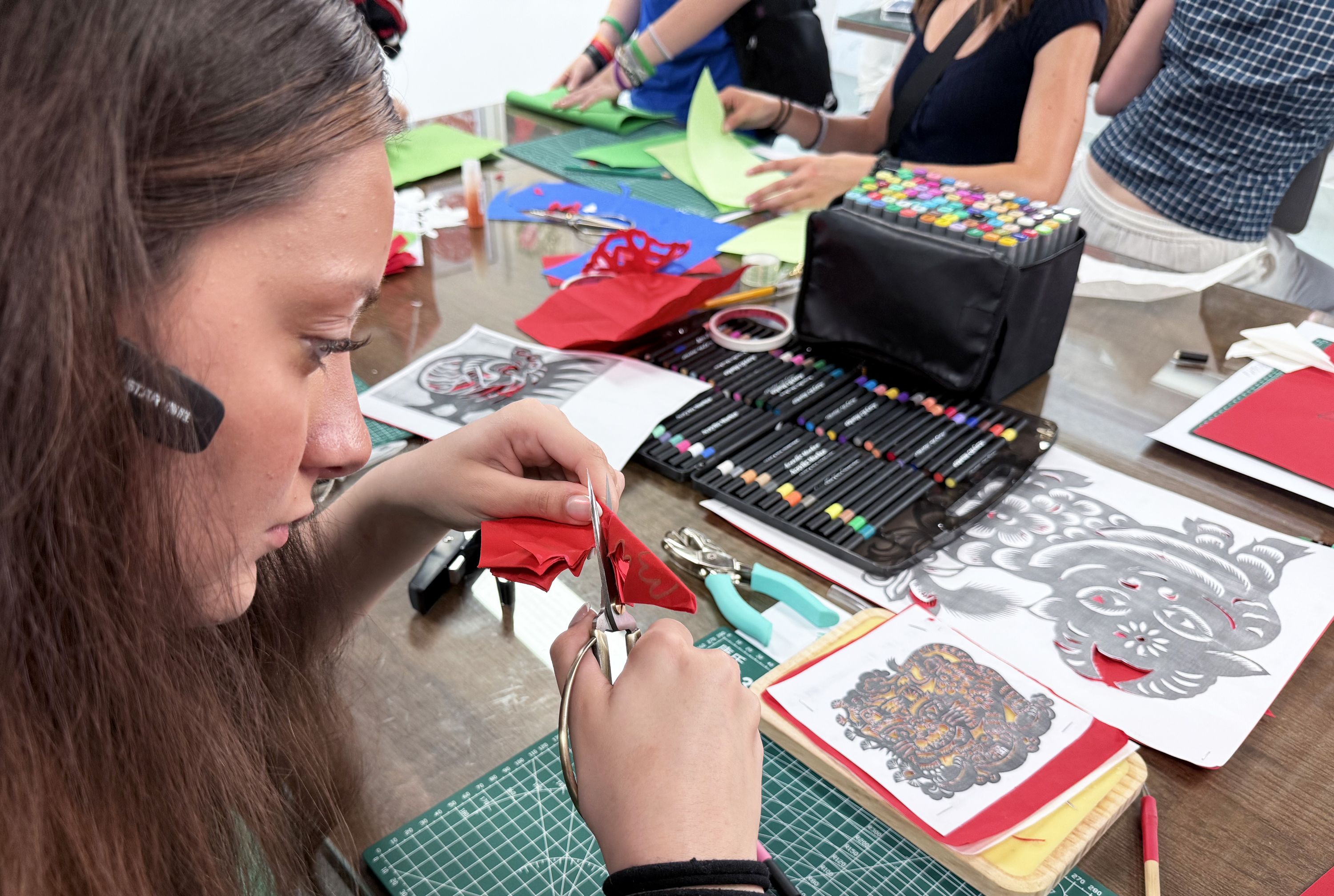 6月18日,活動首日,交流團與當地的小學生開展志愿交流活動。現場,美方學生運用簡單中文詞匯配合生動的肢體語言,展示美國校園文化。雙方還共同參與“你畫我猜”趣味游戲,在輕松氛圍中加深彼此認知。在國家級非物質文化遺產保護單位——武強年畫博物館,交流團系統學習武強年畫的歷史淵源與制作工藝,并親手體驗刻板印制流程。美國得克薩斯州的學生馬肯齊·梅希·坎農(Makenzie Meche Cannon)感慨道:“年畫中鮮活的人物形象仿佛在講述歷史故事,讓人深切感受到中國傳統文化的深厚底蘊。”