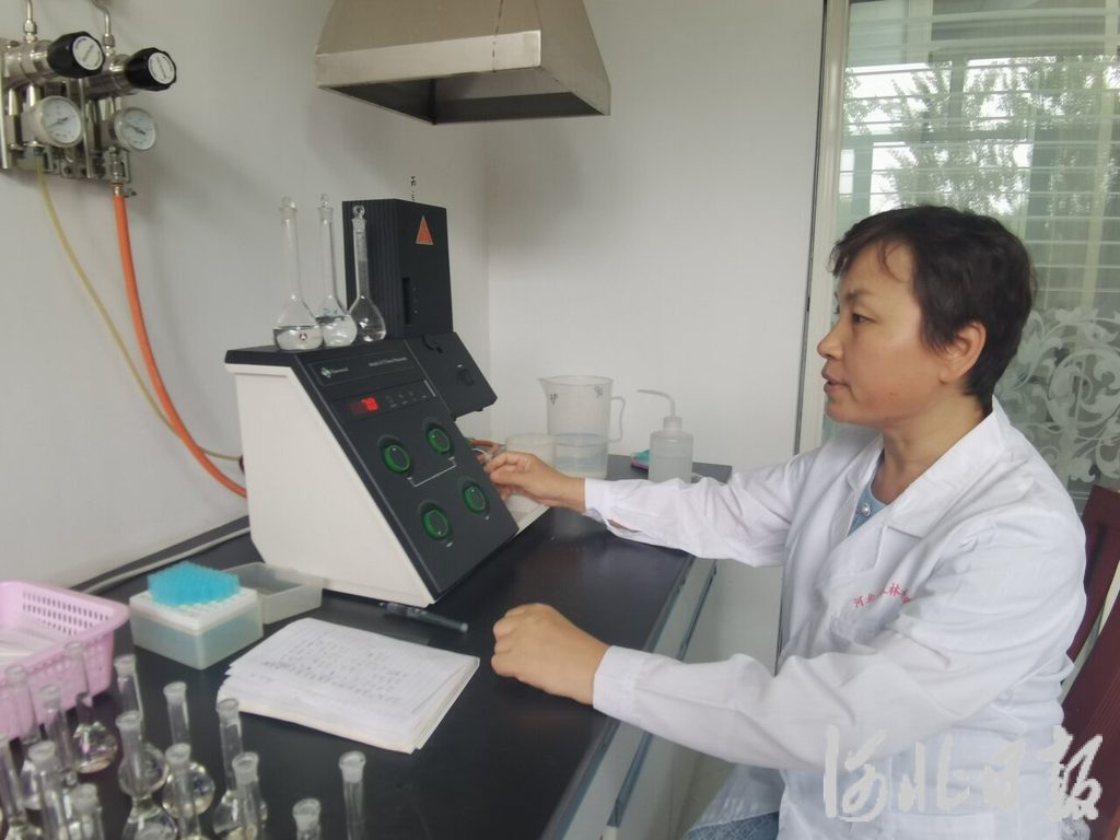 6月25日,省農林科學院農業資源環境研究所研究員王麗英通過實驗測定蔬菜作物中鉀含量。河北日報記者李冬云攝