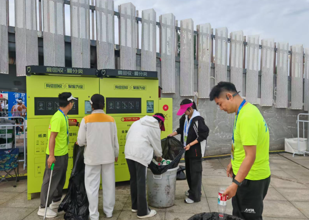 宣傳工作亮點十足,主會場宣傳展區設置“無廢衡馬 綠色出發”展位,通過“掃描二維碼”發放《“無廢馬拉松”倡議書》電子宣傳冊,從餐飲、辦公、家庭、校園等多場景普及“無廢”做法。推行無紙化辦賽,減少印刷12000本官方手冊,使用可再生物資,完賽食品袋也采用可降解材質,從細節處彰顯綠色理念。