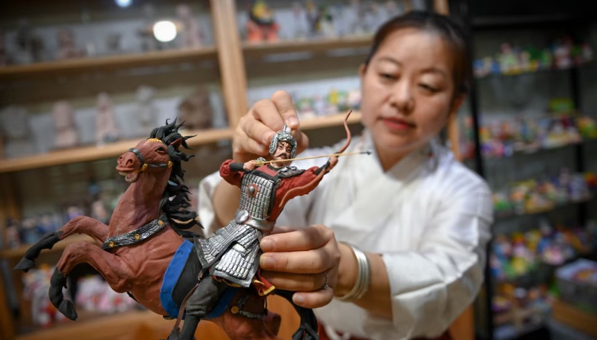 邯鄲市級非物質文化遺產項目面塑代表性傳承人李春芳在做成語文化文創作品。周紹宗攝