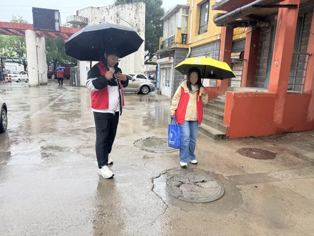 一雙“探路足”,筑牢社區安全防線。當大多數居民在室內避雨時,社區的安全排查志愿者選擇了“逆雨而行”。他們走遍社區的每個角落,仔細檢查低洼地帶積水情況,俯身清理被雜物堵塞的排水口,認真巡視井蓋是否有松動跡象,用堅實的步伐踏出了居民雨天里的“心安”。