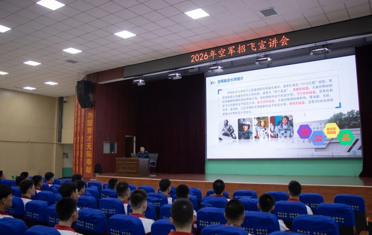 宣講會現(xiàn)場展示了戰(zhàn)機翱翔長空的雄姿、飛行員執(zhí)行任務(wù)的颯爽風(fēng)采,直觀展現(xiàn)了人民空軍的強大實力與使命擔(dān)當(dāng),讓現(xiàn)場學(xué)子深切感受到了 “守護家國長空” 的崇高意義。宣講專家還詳細解讀了空軍招飛的政策條件、選拔流程及培養(yǎng)模式,并結(jié)合真實案例講述了飛行員的成長歷程與光榮事跡。