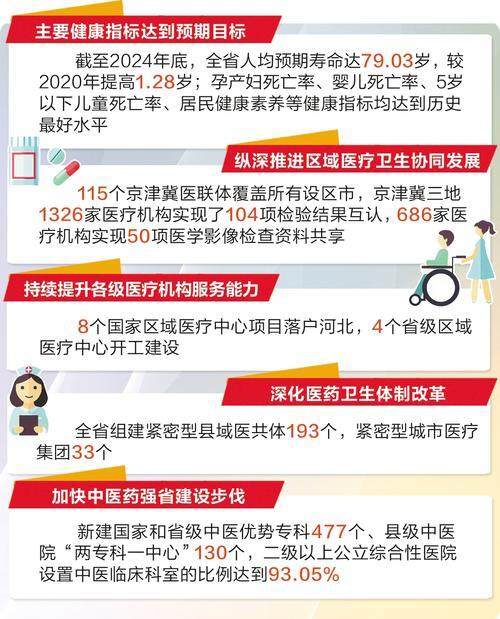 持續提升各級醫療機構服務能力?!笆奈濉睍r期,8個國家區域醫療中心項目落戶河北,累計引進新技術和新項目919項,填補省內空白130項。分三批建設115個京津冀醫聯體,覆蓋所有設區市。推動省域資源下沉基層,一方面,持續開展城市醫院對口幫扶,目前有81家三級醫院“組團式”幫扶204家縣級醫院;另一方面,筑牢縣域醫療服務根基,全省140個縣(市、區)全部組建緊密型縣域醫共體,通過一體化管理、融合式發展,實現人才、技術、設備、藥品等資源縱向貫通、集約共享,推動縣域醫療資源配置更加均衡。截至目前,縣域內就診率達到67.54%,急危重癥搶救能力顯著提高,牽頭醫院出院患者三四級手術比例達到66.92%;基層醫療衛生機構病床使用率明顯提升,患者向縣域外流的情況得到緩解。