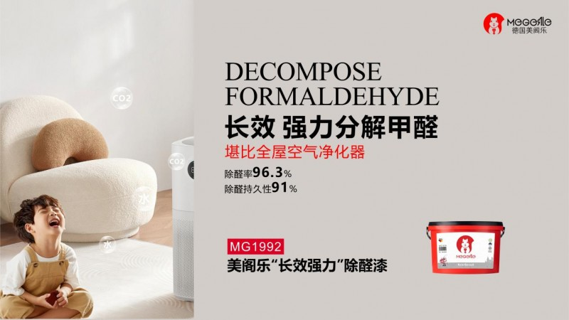 (1)銷量爆款德國美閣樂MG1876“生態凈味”除醛漆,零異味,零甲醛,除甲醛,除醛率≥96%,持久性≥90%,頂級環保產品,適合高品質環保入門家裝使用;