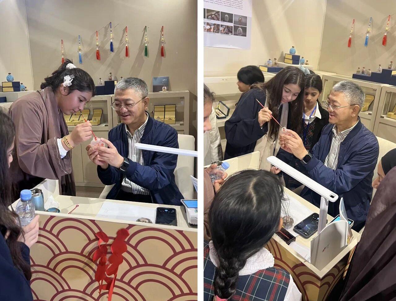 在學生開放日上,沙特多所學校的學生們涌入手工藝周現場。衡水內畫展位前尤為熱鬧,學生們對內畫藝術表現出濃厚興趣。在王自勇的指導下,大家動手體驗內畫創作的基本技巧。雖初次嘗試難免笨拙,但每個孩子都全神貫注,沉浸在這一新奇的藝術體驗中。許多學生在體驗后表示,通過這次活動,他們不僅了解了中國傳統文化,也對內畫手工藝產生了新的認識,拓寬了國際視野,激發了對傳統手工藝的興趣。